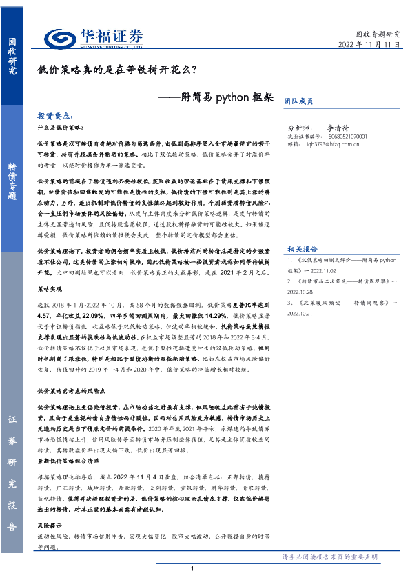Python框架 低价策略 可转债 金融投资 风险分析