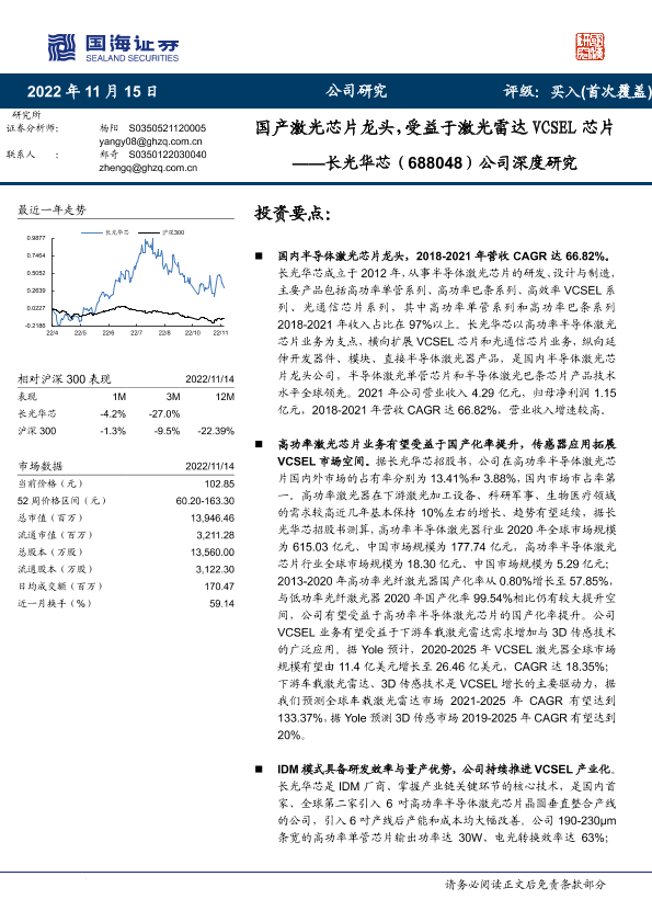 【国海证券】【20221115】长光华芯公司深度研究:国产激光芯片龙头,受益于激光雷达VCSEL芯片-47页