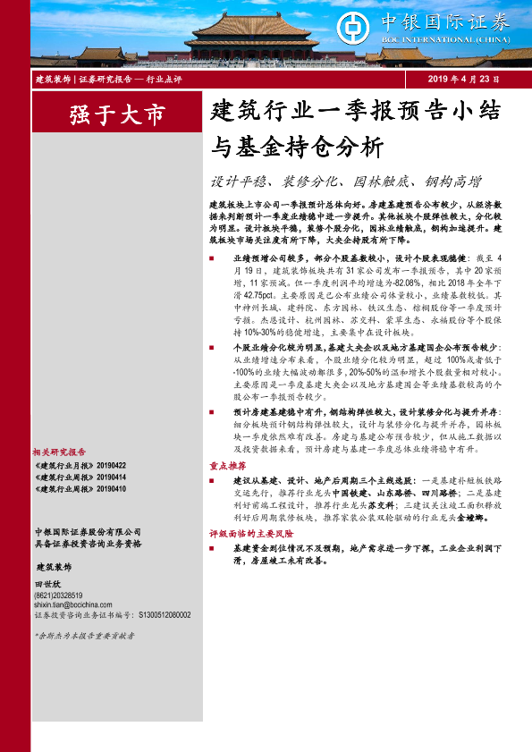 【中银证券】【20190423】建筑行业一季报预告小结与基金持仓分析-8页