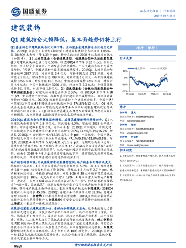 【国盛证券】【20190428】Q1建筑持仓大幅降低,基本面趋势仍将上行-13页