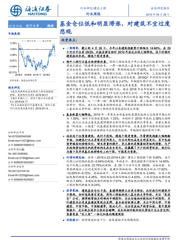 【海通证券】【20190428】建筑工程行业周报:基金仓位低和明显滞涨,对建筑不宜过度悲观-8页
