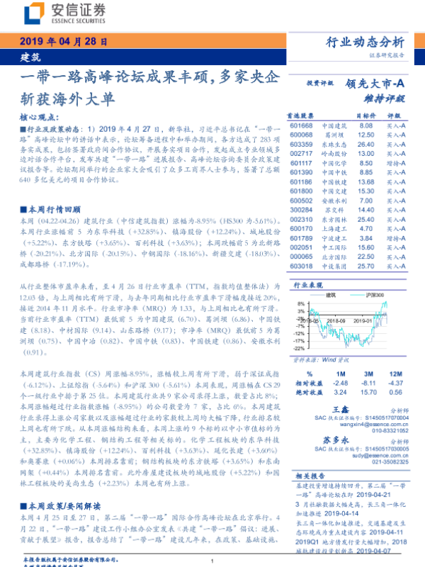【安信证券】【20190428】建筑行业动态分析:一带一路高峰论坛成果丰硕,多家央企斩获海外大单-11页