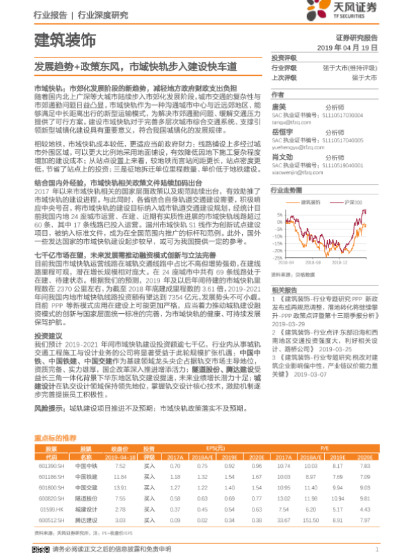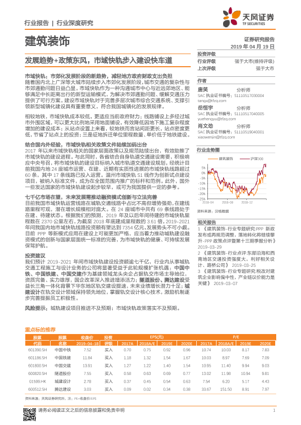 【天风证券】【20190419】建筑装饰行业深度研究:发展趋势+政策东风,市域快轨步入建设快车道-32页