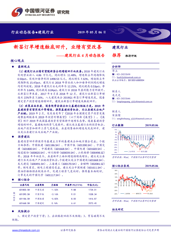 【银河证券】【20190506】建筑行业4月动态报告:新签订单增速触底回升,业绩有望改善-23页