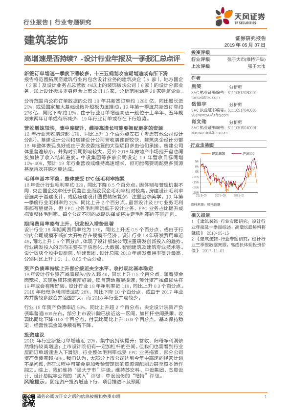 【天风证券】【20190507】设计行业年报及一季报汇总点评:高增速是否持续?-16页