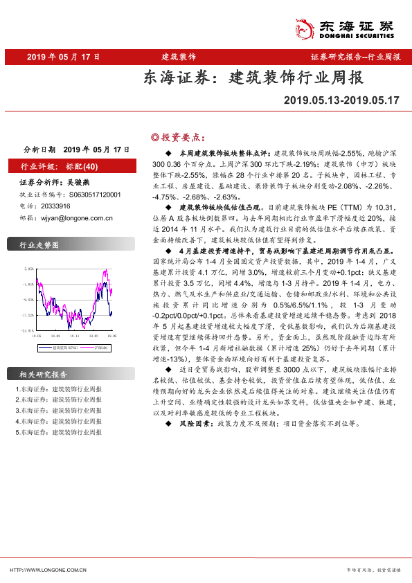 【东海证券】【20190517】建筑装饰行业周报-8页
