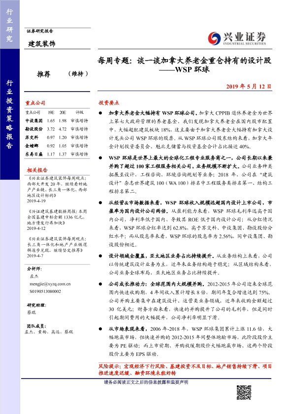 【兴业证券】【20190512】每周专题:谈一谈加拿大养老金重仓持有的设计股——WSP环球-12页