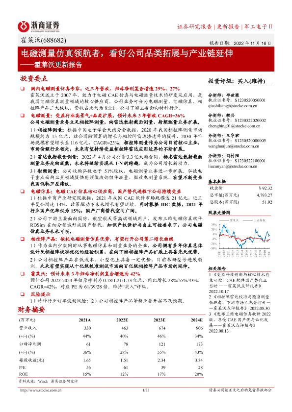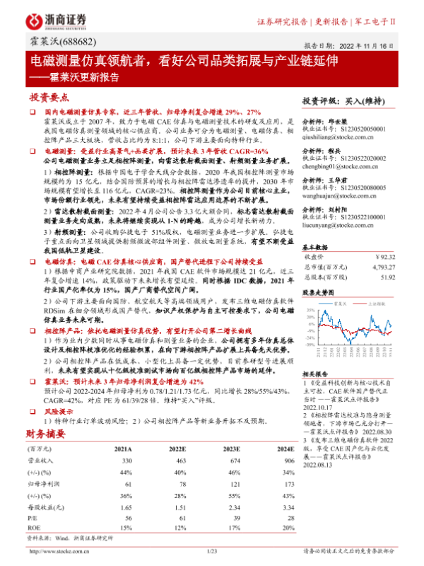 【浙商证券】【20221116】霍莱沃更新报告:电磁测量仿真领航者,看好公司品类拓展与产业链延伸-23页