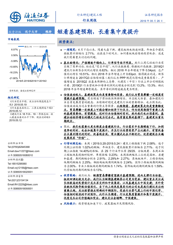 【海通证券】【20190526】建筑工程行业周报:短看基建预期,长看集中度提升-8页