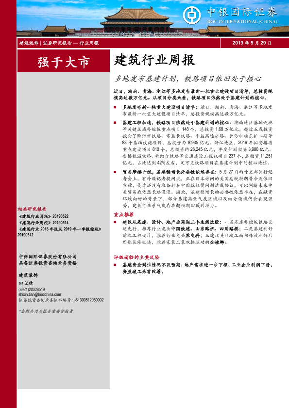 【中银证券】【20190529】建筑行业周报:多地发布基建计划,铁路项目依旧处于核心-15页