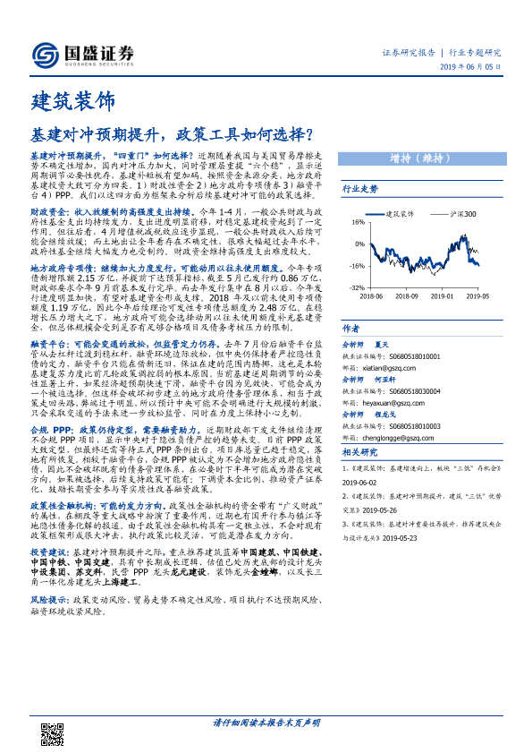 【国盛证券】【20190605】建筑装饰行业专题研究:基建对冲预期提升,政策工具如何选择?-13页