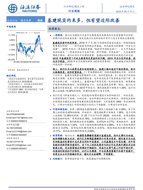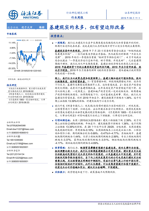 【海通证券】【20190611】建筑工程行业周报:基建现实约束多,但有望边际改善-8页