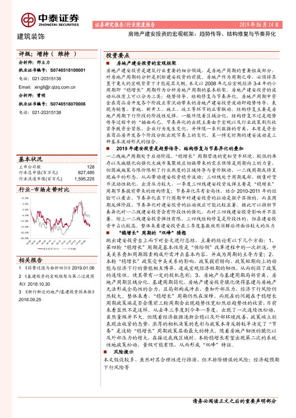 【中泰证券】【20190614】建筑装饰行业深度报告:房地产建安投资的宏观框架:趋势传导、结构修复与节奏异化-40页