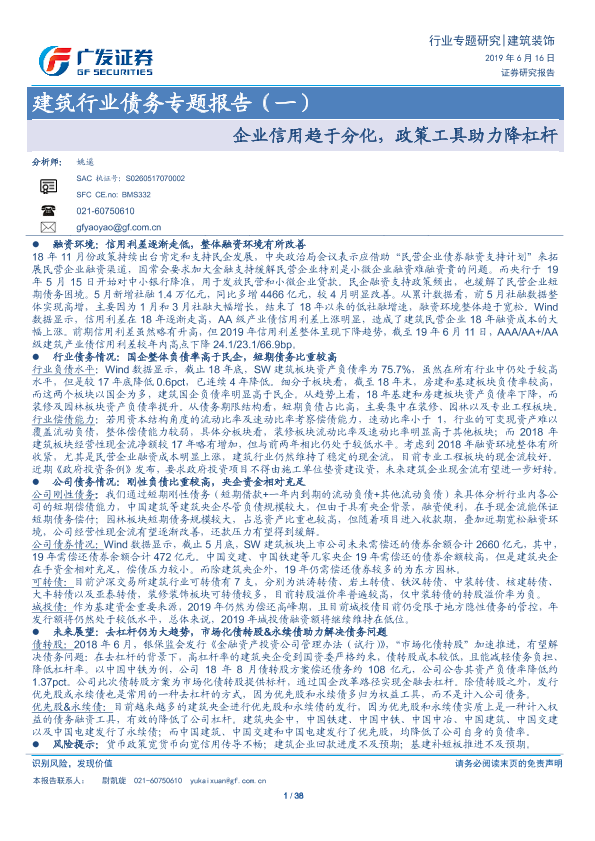 【广发证券】【20190616】建筑行业债务专题报告(一):企业信用趋于分化,政策工具助力降杠杆-38页