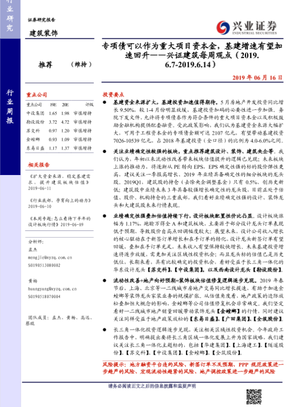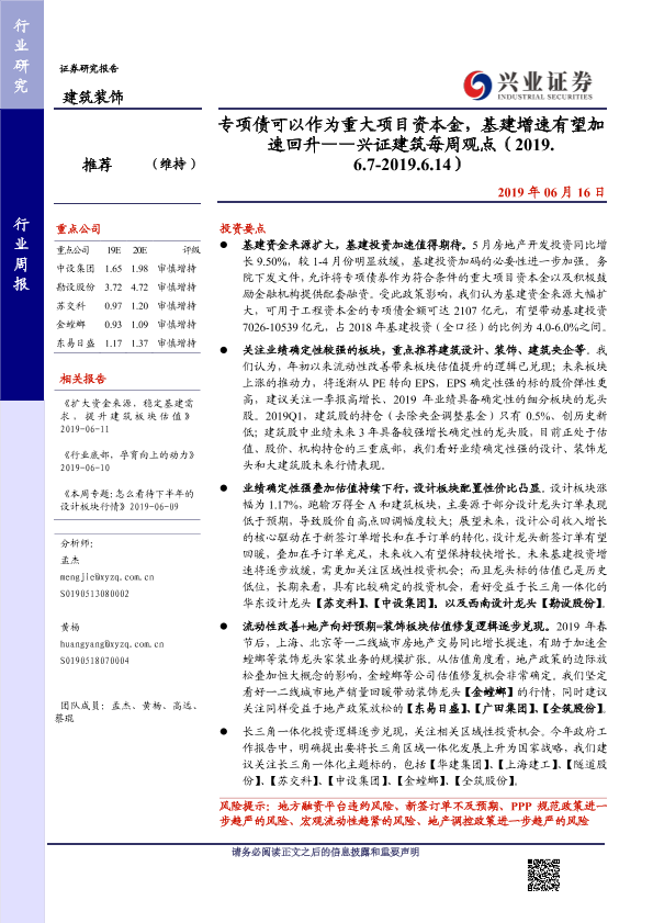 【兴业证券】【20190616】专项债可以作为重大项目资本金,基建增速有望加速回升-24页