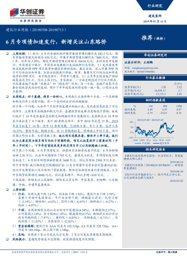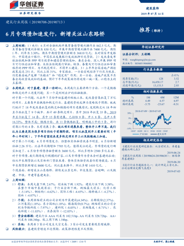 【华创证券】【20190714】建筑行业周报:6月专项债加速发行,新增关注山东路桥-21页