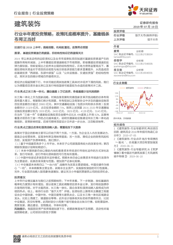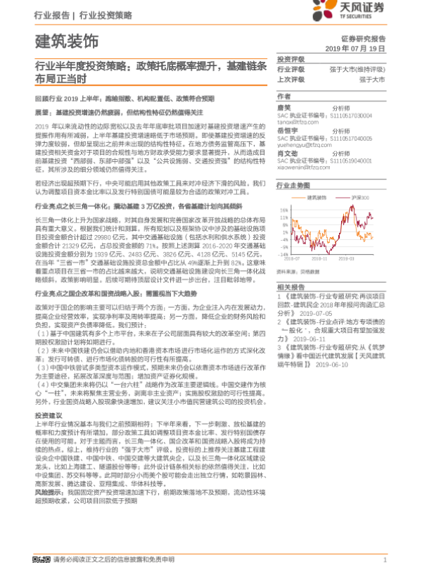 【天风证券】【20190719】建筑装饰行业半年度投资策略:政策托底概率提升,基建链条布局正当时-32页