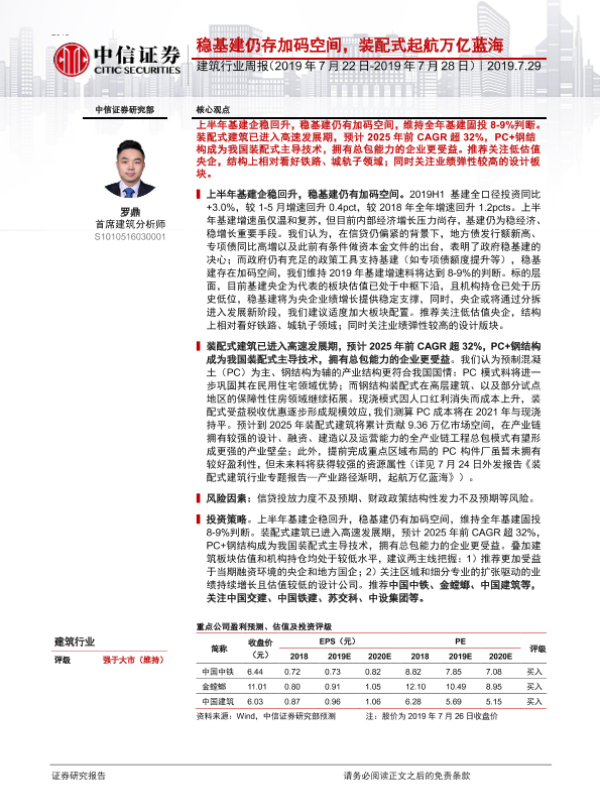 【中信证券】【20190729】稳基建仍存加码空间,装配式起航万亿蓝海-31页