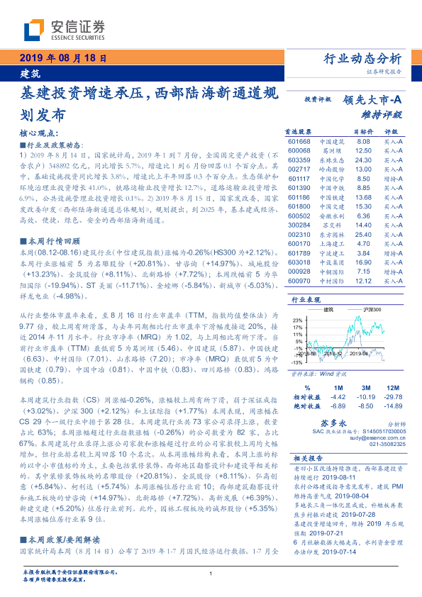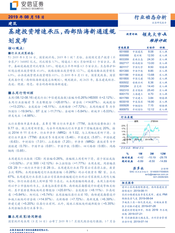 【安信证券】【20190818】建筑行业动态分析:基建投资增速承压,西部陆海新通道规划发布-10页
