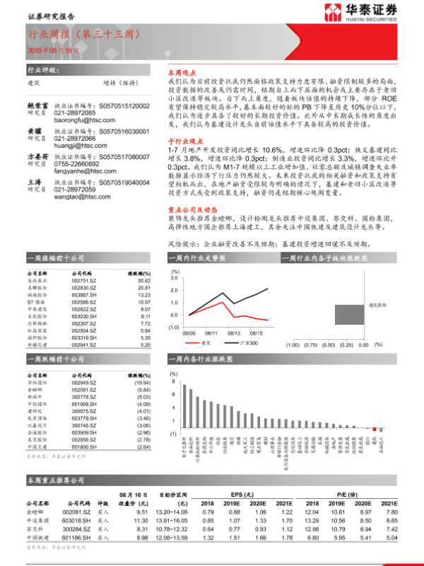 【华泰证券】【20190818】建筑行业周报(第三十三周)-12页
