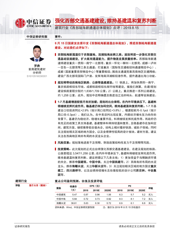 【中信证券】【20190815】建筑行业《西部陆海新通道总体规划》点评-4页