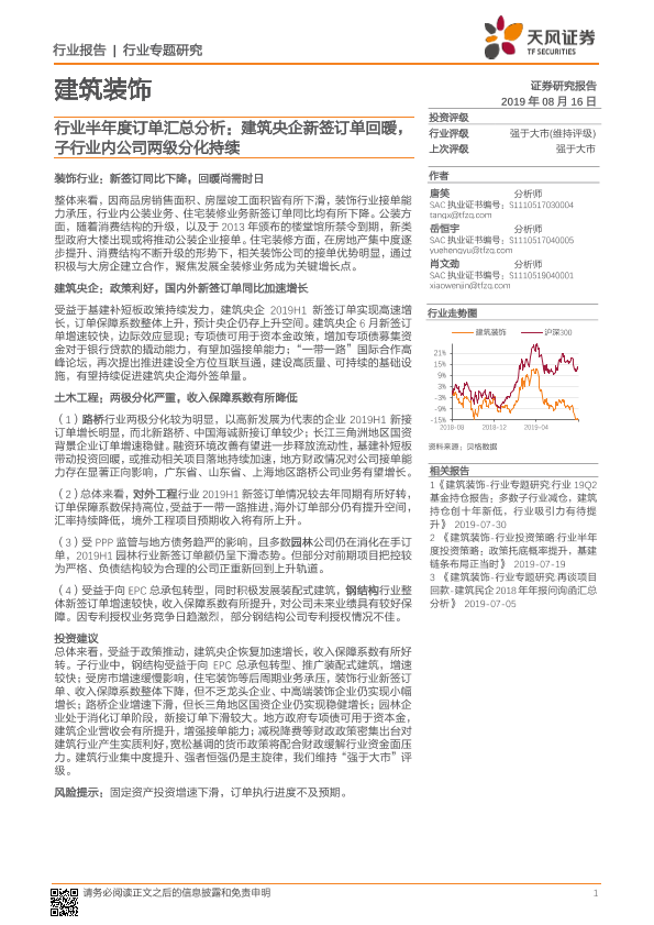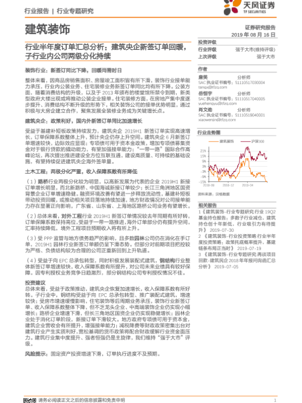 【天风证券】【20190816】建筑装饰行业专题研究:行业半年度订单汇总分析-18页