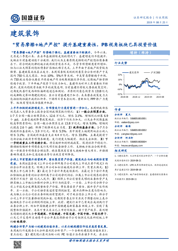 【国盛证券】【20190825】建筑装饰行业周报:“贸易摩擦+地产严控”提升基建重要性,PB视角板块已具投资价值-13页
