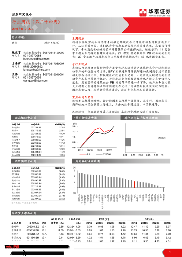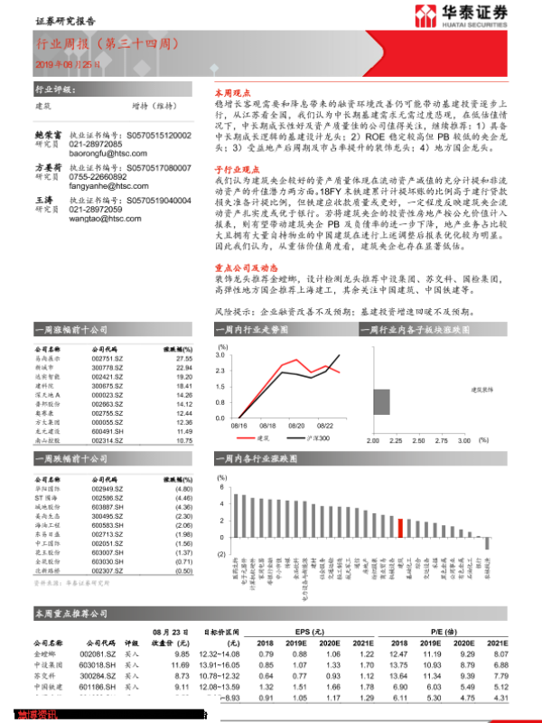 【华泰证券】【20190825】建筑行业周报(第三十四周)-11页