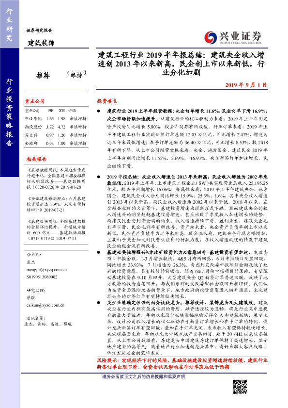 【兴业证券】【20190901】建筑工程行业2019半年报总结-36页