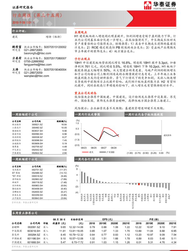 【华泰证券】【20190901】建筑行业周报(第三十五周)-11页