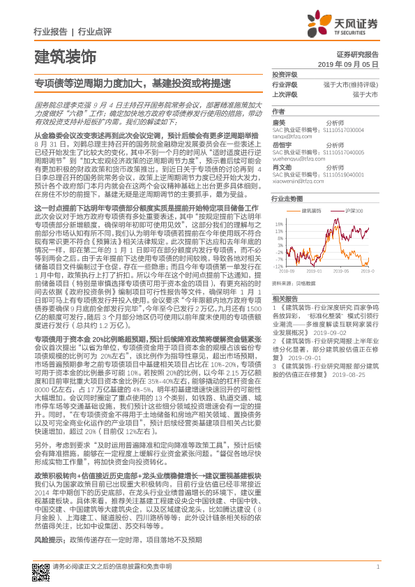 【天风证券】【20190905】建筑装饰行业点评:专项债等逆周期力度加大,基建投资或将提速-3页