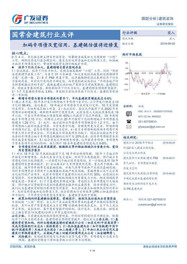 【广发证券】【20190905】国常会建筑行业点评:加码专项债及宽信用,基建链估值将迎修复-4页