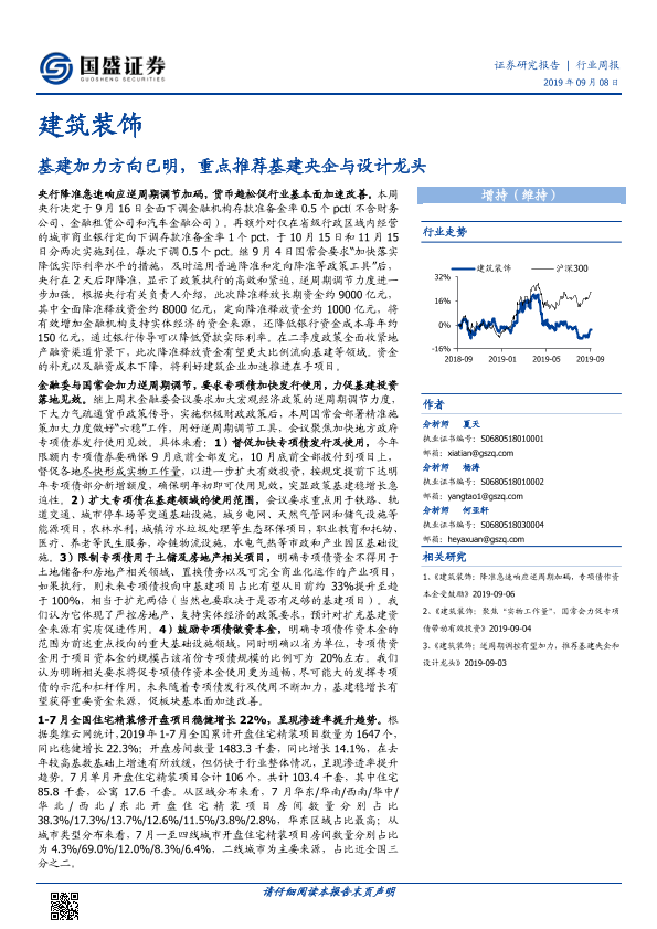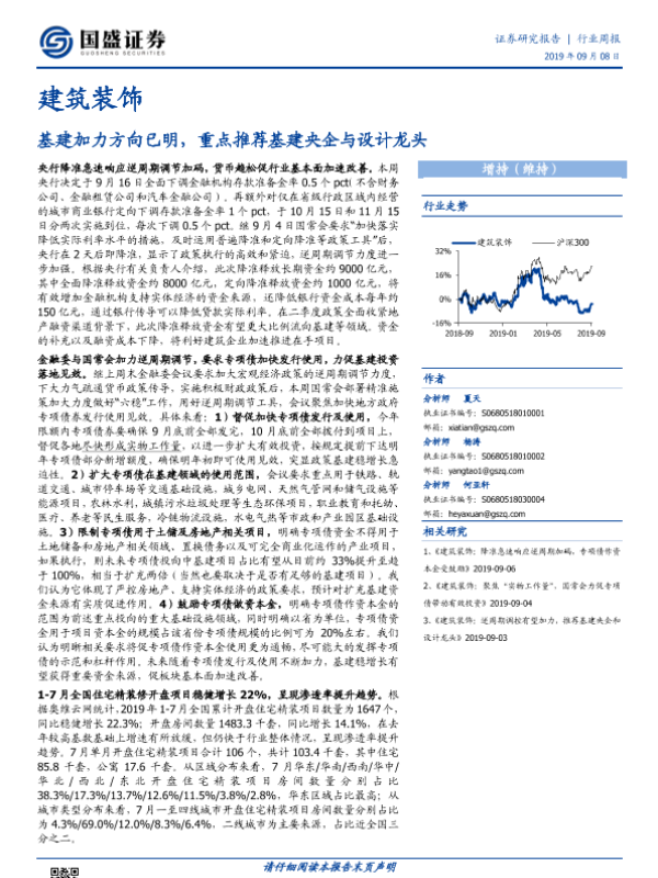 【国盛证券】【20190908】建筑装饰行业周报:基建加力方向已明,重点推荐基建央企与设计龙头-13页
