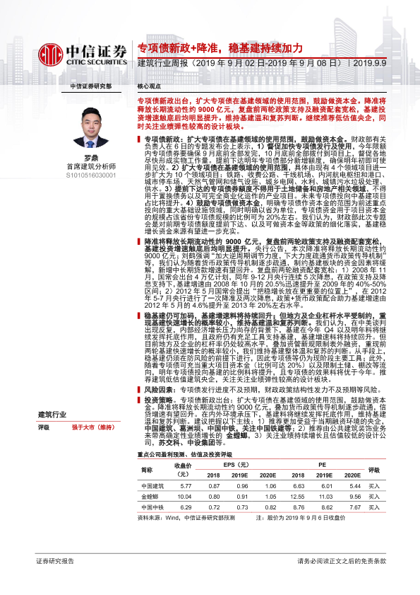 【中信证券】【20190909】建筑行业周报:专项债新政+降准,稳基建持续加力-32页