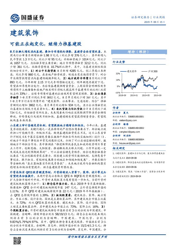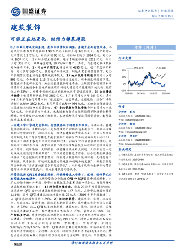 【国盛证券】【20190915】建筑装饰行业周报:可能正在起变化,继续力推基建股-14页
