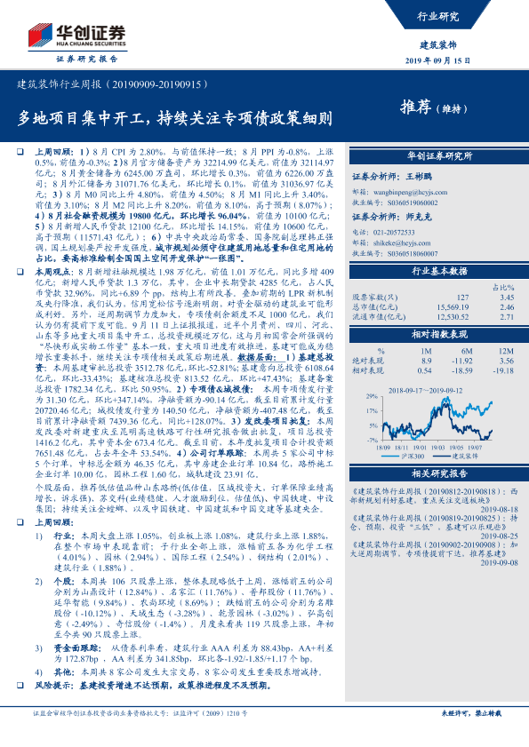 【华创证券】【20190915】建筑装饰行业周报:多地项目集中开工,持续关注专项债政策细则-15页