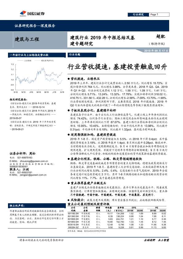 【国信证券】【20190917】建筑行业2019年中报总结及基建专题研究:行业营收提速,基建投资触底回升-33页