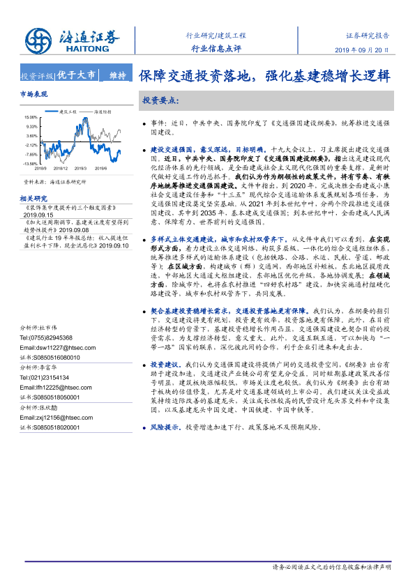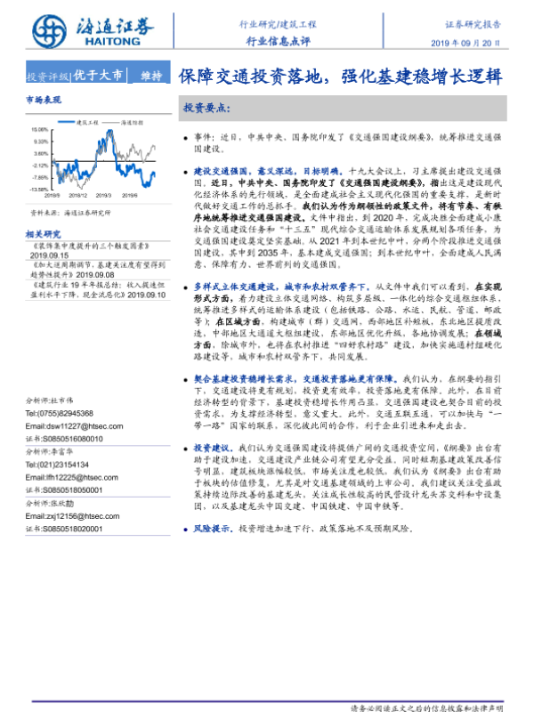 【海通证券】【20190920】建筑工程行业信息点评:保障交通投资落地,强化基建稳增长逻辑-2页