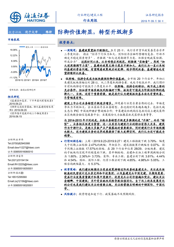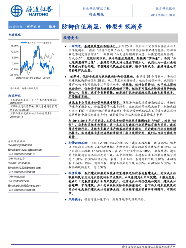 【海通证券】【20190930】建筑工程行业周报:防御价值渐显,转型升级渐多-6页