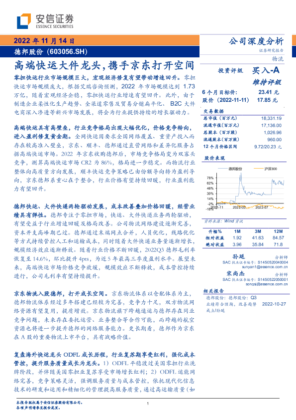 【安信证券】【20221114】高端快运大件龙头,携手京东打开空间-30页