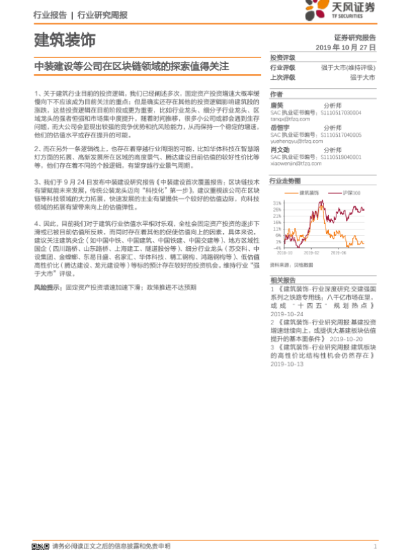 【天风证券】【20191027】建筑装饰业研究周报:中装建设等公司在区块链领域的探索值得关注-2页