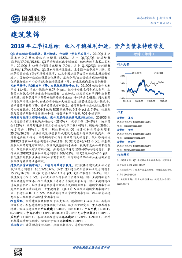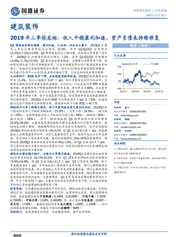 三季报总结 建筑装饰 收入增长 盈利加速 资产负债表修复