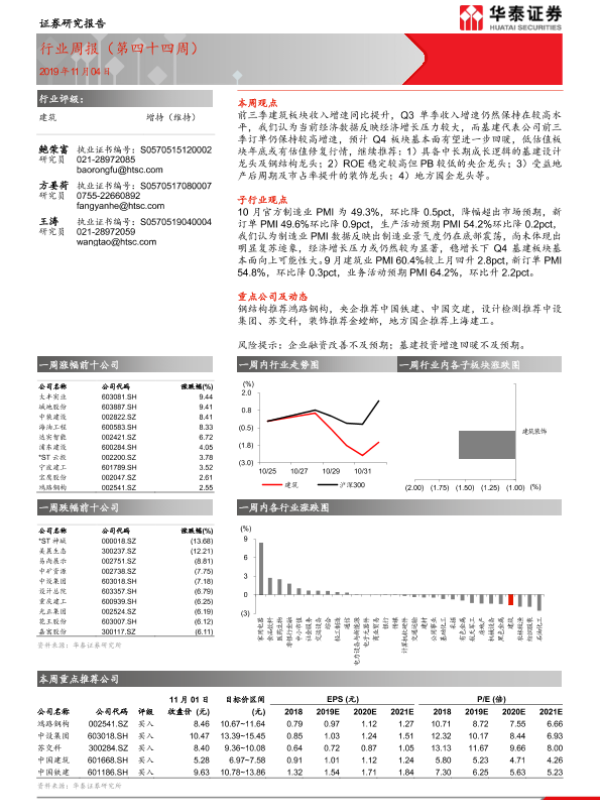 【华泰证券】【20191104】建筑行业周报(第四十四周)-13页