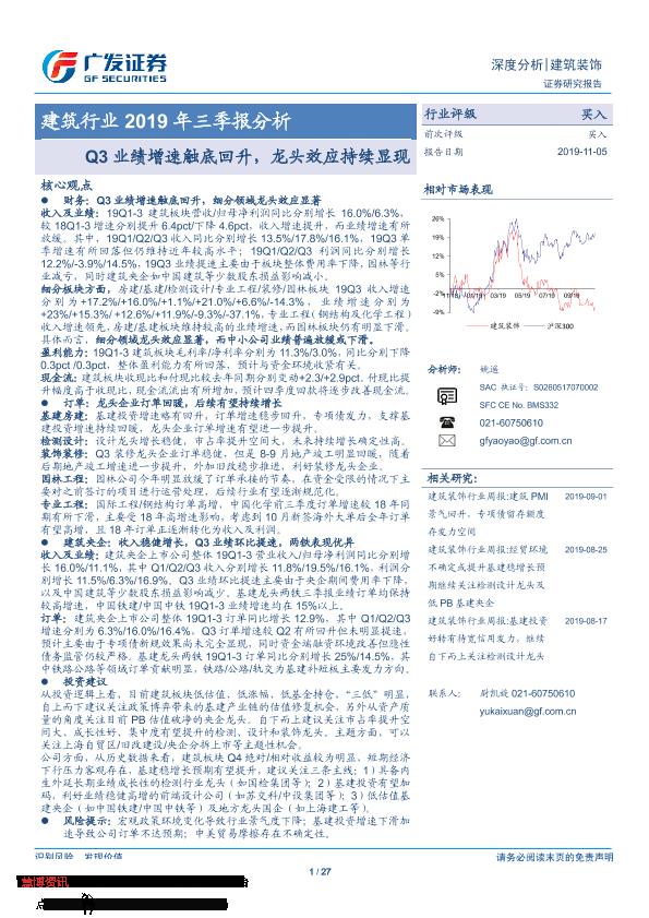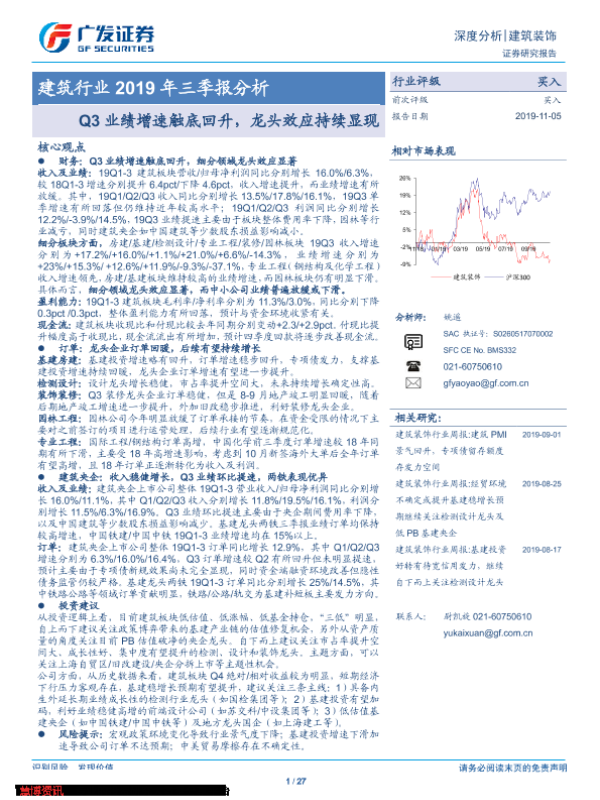 【广发证券】【20191105】建筑行业2019年三季报分析-27页