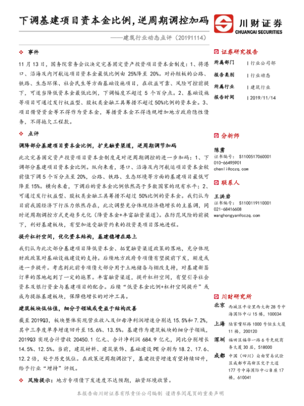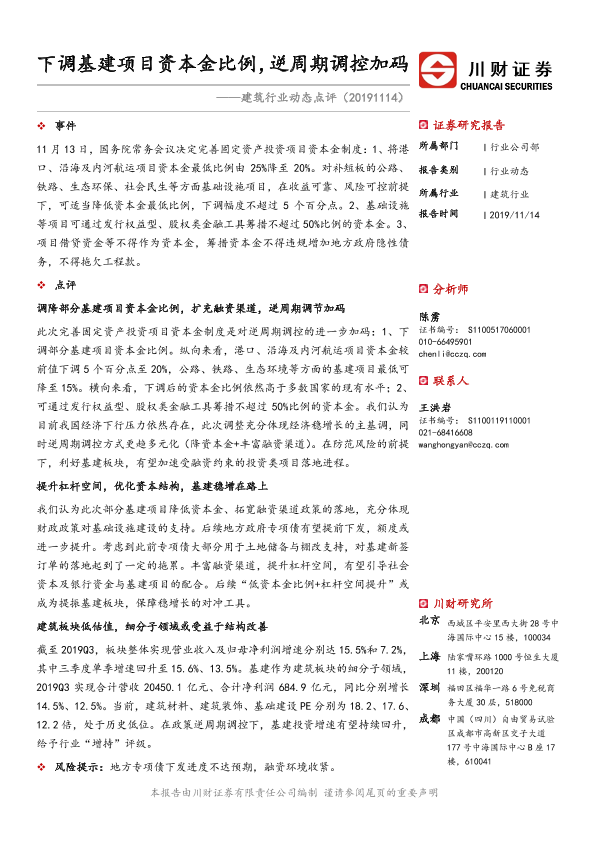 【川财证券】【20191114】建筑行业动态点评:下调基建项目资本金比例,逆周期调控加码-2页
