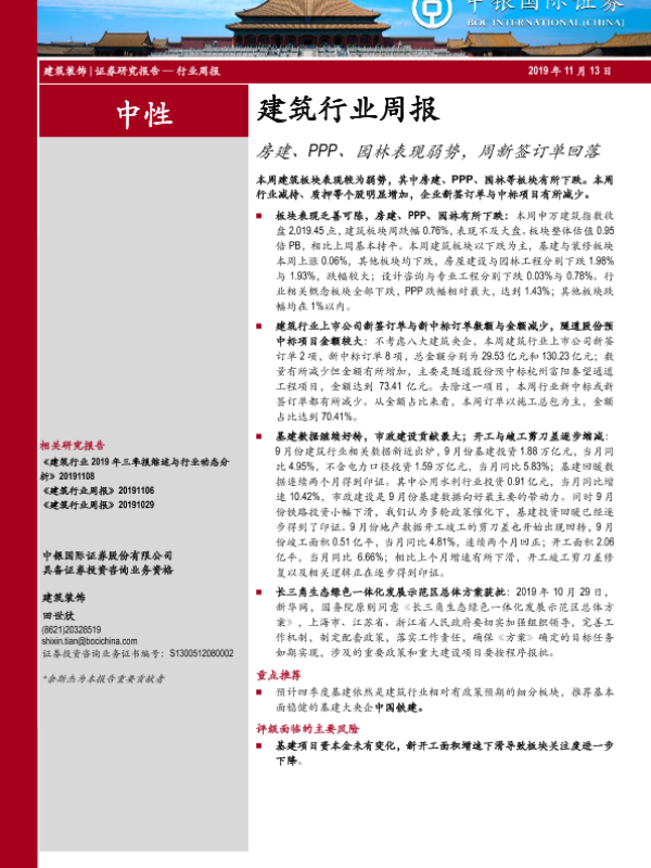 【中银证券】【20191113】建筑行业周报:房建、PPP、园林表现弱势,周新签订单回落-14页
