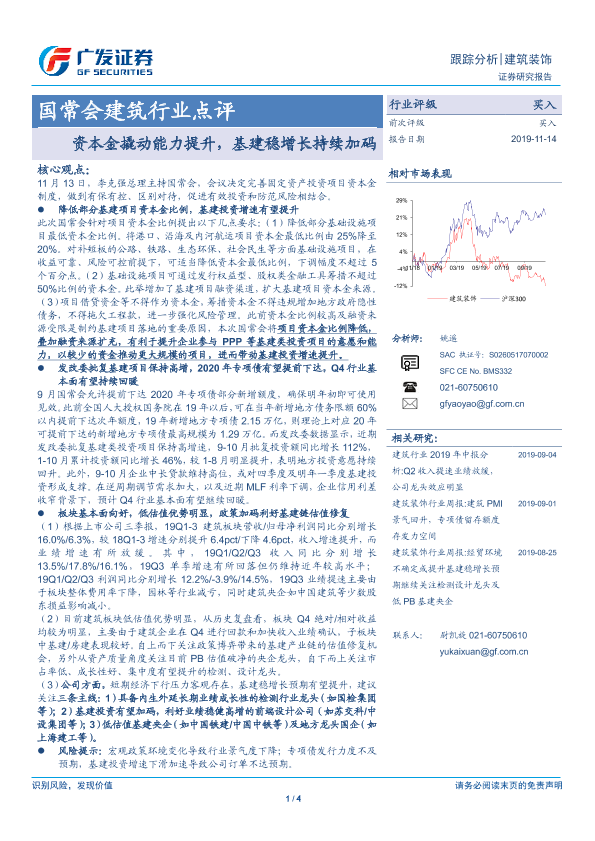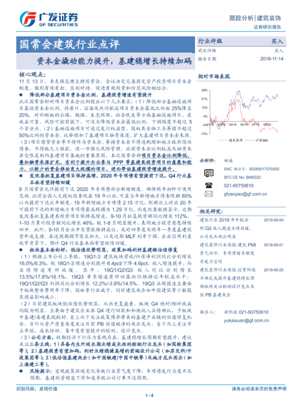 【广发证券】【20191114】国常会建筑行业点评:资本金撬动能力提升,基建稳增长持续加码-4页