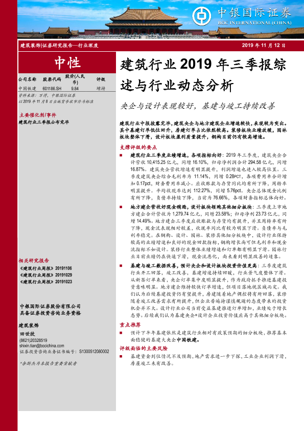 三季报 基建 央企 建筑行业 设计