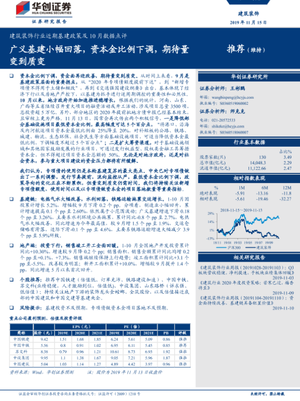 【华创证券】【20191115】建筑装饰行业近期基建政策及10月份数据点评-5页