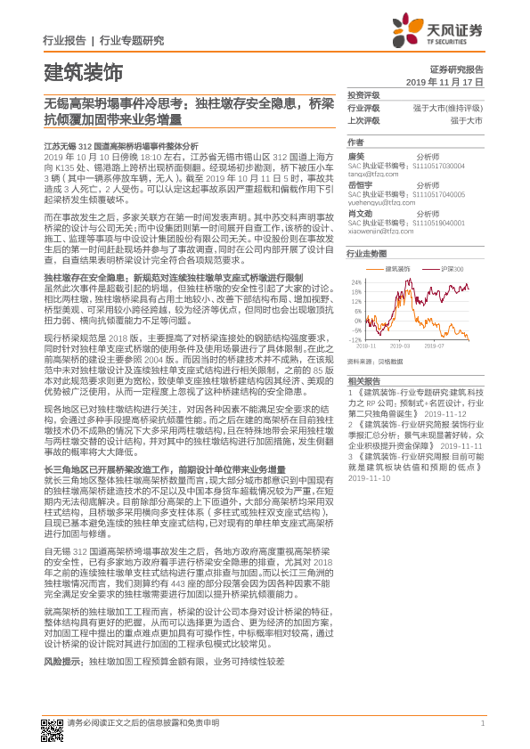 【天风证券】【20191117】无锡高架坍塌事件冷思考:独柱墩存安全隐患,桥梁抗倾覆加固带来业务增量-13页